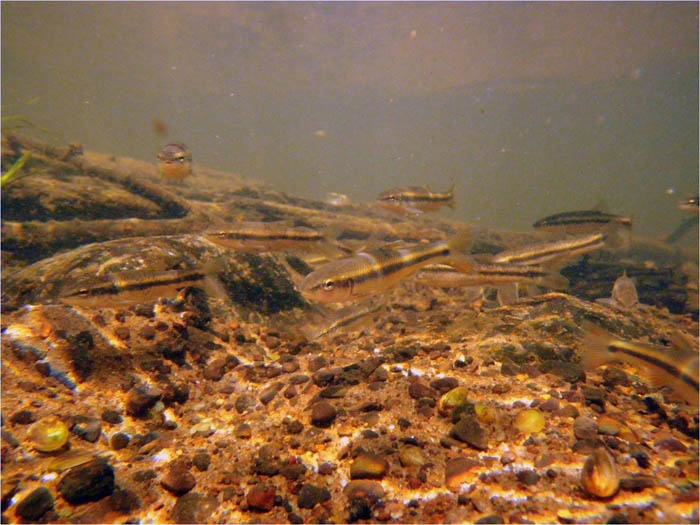 There are many species of fish found on the Namekagon River. During a visit in July of 2008, researchers documented and took pictures of the different kinds of fish found on the Namekagon. Click on any image to see an enlarged image. When you click on an image, you will be able to control the slideshow by hovering over the right and left sides of the image.